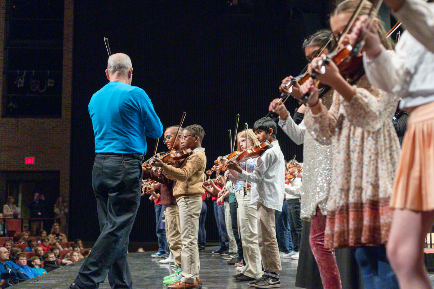 When the season ends, those lessons come to life on stage. Dozens of young musicians perform side by side, bows rising and falling in rhythm. Some watch their neighbors for cues, others lead boldly, their sound clear and steady. Together, they create something that feels bigger than themselves, a community in harmony.